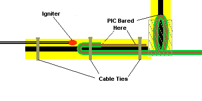 To light a sequence using an electric igniter is quite simple and reliable. First the PIC linking the sequence is joined to a short piece of Pipe Match. (See PIC/Pipe Match) It is then simply a matter of inserting the igniter into the open end of the Pipe Match and securing it with a cable tie.